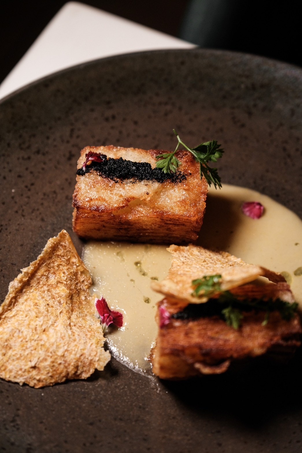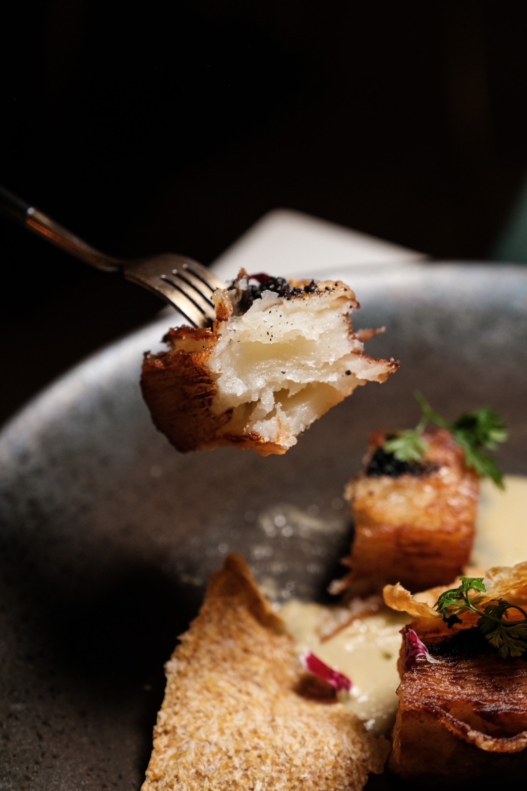咬下千層口感後綿密,馬鈴薯香四溢,柑橘奶醬簡單提味,原味也很好吃。